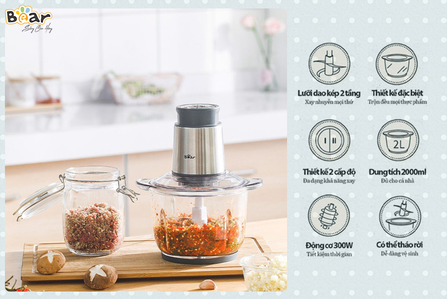 🌶 Thích hợp xay thịt, cua, cá, rau củ, gia vị, hạt,…